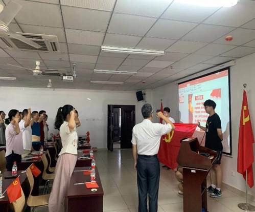 最后,在学院党委书记邓秀成的带领下,在场所有党员同志重温入党誓词,共同歌唱《没有共产党就没有新中国》。