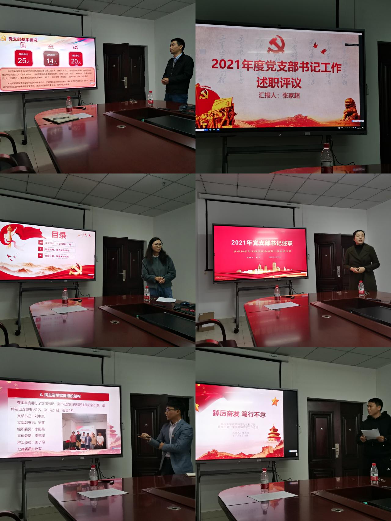 会前,各支部书记认真学习了德赢AC米兰中国官方网站《关于开展2021年度党组织书记抓基层党建述职评议考核工作的通知》精神,并要求根据工作职责,结合支部工作实际,撰写述职报告。会上,教工支部书记李川、张家超,学生支部书记欧少红、刘中原、李丹、杨玉珅、徐森政结合党史学习教育专题,分别从党员教育、党员管理、党员服务、党员监督等方面谈了支部党建工作开展情况、存在的问题及下一步打算。邓秀成书记充分肯定了各支部成绩,对存在的不足进行逐一点评。邓书记要求:一是进一步将党史学习教育成果转化为支部和党员干事创业的强大动力,推进特色工作,增强服务意识,提升党组织凝聚力。二是注重实践,强化锻炼,不断提升党建工作与业务工作的新融合,提高开展工作的新本领,服务学校学院中心工作。三是立足大局,准确定位工作新思路,紧扣新一年学校三大综合改革工作重点和主题,在基层组织工作落实、支部书记抓党建工作、支部标准化规范化巩固、样板支部创建、支部特色建设等方面下功夫。