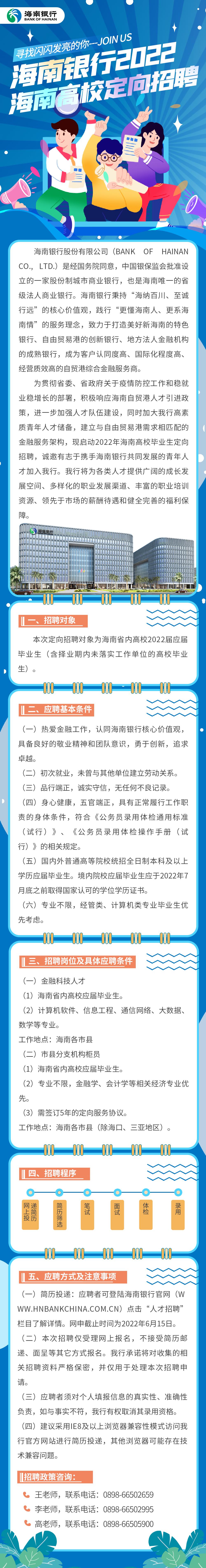 海南银行股份有限公司2022年海南高校定向招聘公告