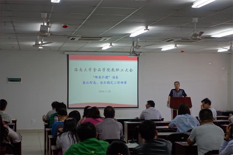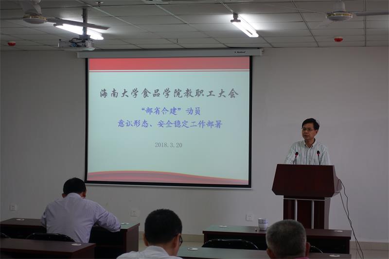邓秀成书记传达了武耀廷书记在“部省合建”德赢AC米兰中国官方网站动员大会的讲话精神以及李健保校长2018春季工作部署。他指出,在“部省合建”政策支持下,德赢AC米兰中国官方网站正式纳入教育部直属高校排序,教育部、海南省将会加大对学校发展的支持力度,德赢AC米兰中国官方网站迎来了快速发展的黄金期。要求学院广大教师、学生将思想统一到学校“双一流”建设、“部省合建”德赢AC米兰中国官方网站行动部署上来,紧扣大学核心竞争力,围绕人才培养、学术研究、服务国家战略和地方经济社会发展三大任务,认真思考食品学院的责任与担当,抢抓机遇,顺势而为,怀着无愧于新时代的责任感与使命感,扎实将部省合建各项任务落到实处。