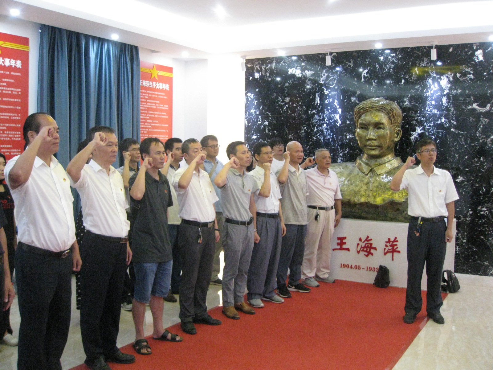 活动中,大家首先来到王海萍、梁惠贞烈士纪念碑,学工处处长陈卫东同志带领大家向烈士纪念碑敬献鲜花,默哀,集体三鞠躬致敬。随后,参观王海萍纪念馆,德赢官网校友蔡泽进同志现场讲解,详细生动地讲授了王海萍烈士光辉而短暂的一生英雄事迹。透过一幅幅珍贵的历史图片、文献资料和王海萍烈士的珍贵遗物,重温了党的光辉历程,深切表达了缅怀之情,受到了一次生动而深刻的党性教育。最后,在肃穆的纪念馆展厅里,学院党委书记邓秀成同志带领全体党员同志紧握右拳,饱含激情,庄严宣誓,重温入党誓词。