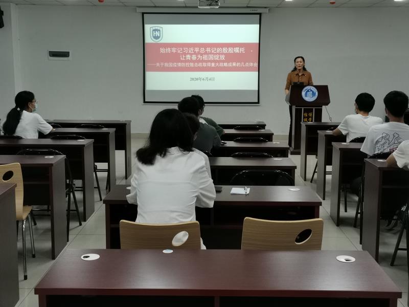 2020年6月4日晚,校党委常委、组织部长韩淑梅走进课堂,为德赢AC米兰中国官方网站2018级食品科学与工程类1班学生讲授了一堂精彩的形势与政策课,分享我国疫情防控阻击战取得重大战略成果的心得体会。
