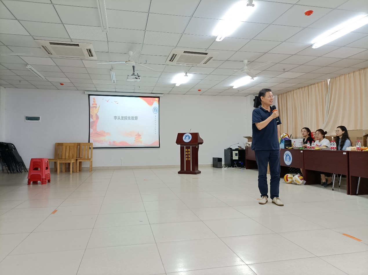活动在全体教职工合唱“没有共产党就没有新中国”歌曲中拉开帷幕,党史知识问答和团队趣味活动交叉进行。党史知识问答活动中,教职工们积极思考,主动举手抢答,气氛热烈紧张而又愉快放松,“一大会址、中国共产党的最高理想和最终奋斗目标……”等党史知识更加深入人心;趣味活动中,教职工团结协作,斗志昂扬,奋力拼搏,展现了各自的风采,活动现场变成了欢乐的海洋,大家纷纷表示这些活动放松了身心,愉悦了心情,又提升了团队的合作能力。在活动中学院还举行了教职工荣休仪式。仪式上,康丽如、蔡锦红两位老师回顾了自己在学院工作的点点滴滴,表达了对工作的深深眷恋和对学院发展的祝福,现场的同事也纷纷送上了对两位老师的美好祝愿,邓秀成书记代表学院为他们送上了慰问品;在发奖环节,各个参加活动的教职工和团队都欣喜地收到了学院工会为大家准备的奖品,活动也在欢乐的气氛中落下了帷幕。
