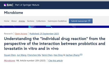 2023年9月26日,德赢AC米兰中国官方网站食品学院与工程学院及全健康协同创新中心张家超教授团队的最新研究成果“Understanding the “individual drug reaction” from the perspective of the interaction between probiotics and lovastatin in vitro and in vivo”发表于微生物组高水平期刊《Microbiome》(中国科学院大类1区Top期刊,IF=15.5)。研究团队首次阐明了热带益生菌A5对洛伐他汀类药物副作用的缓解机制。