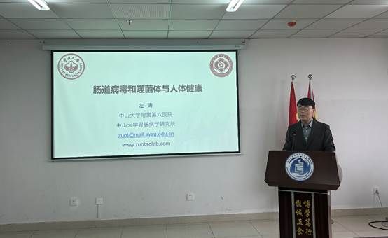 2023年12月27日上午,德赢官网邀请中山大学胃肠病学研究所副所长、国家高层次青年人才左涛研究员在研发楼610会议室作了题为“肠道噬菌体和病毒与人体健康”的学术报告。报告由李川副院长主持,学院邓秀成书记等院领导、部分教师和研究生聆听了报告。