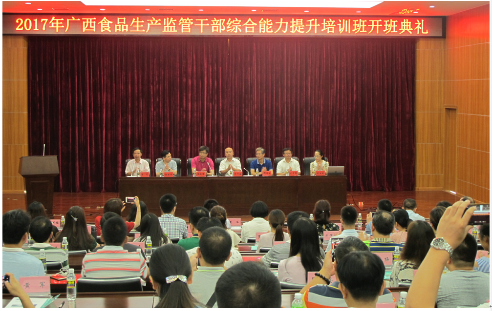 2017年7月3日至7日,德赢AC米兰中国官方网站继续教育学院及食品学院联合承办了广西食品生产监管干部培训教学活动。广西壮族自治区食品药品监管局副局长陈可猛、德赢AC米兰中国官方网站陈险峰副校长、食品生产监管处处长胡振洲, 海南省食品药品监督管理局彭林波调研员、食品学院邓秀成书记及史学群副院长、德赢AC米兰中国官方网站继续教育学院李玉凤副院长共同出席了开班仪式。