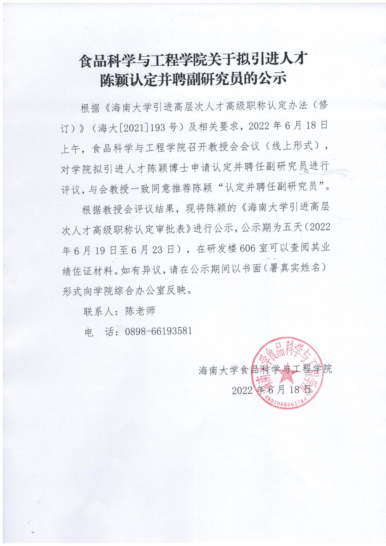 德赢AC米兰中国官方网站关于拟引进人才陈颖认定并聘副研究员的公示