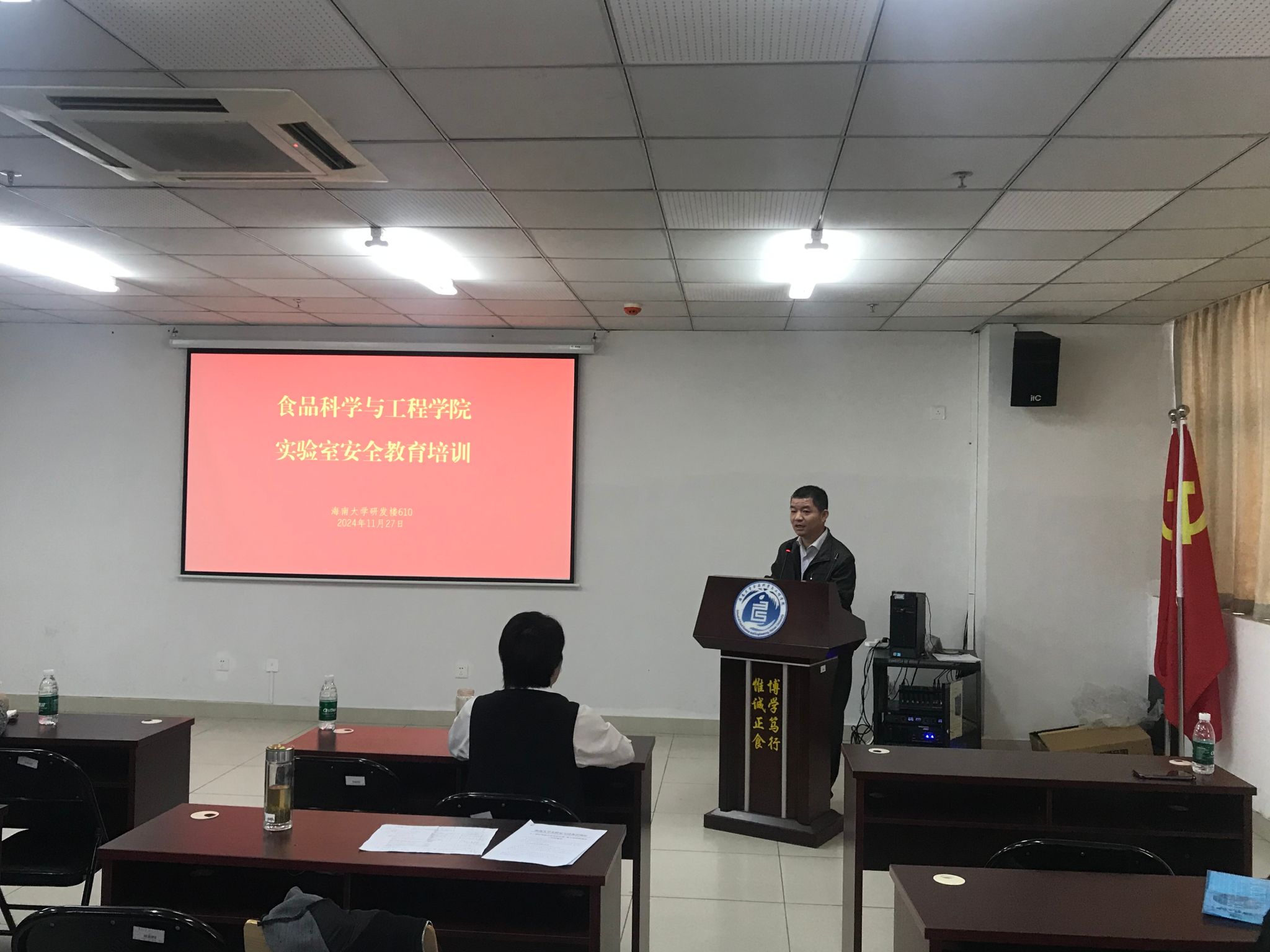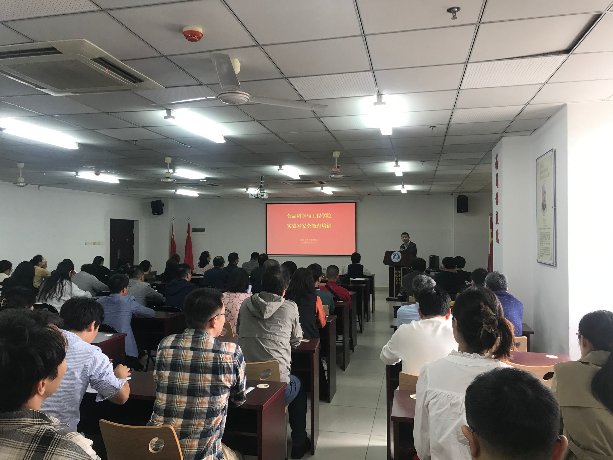 为了落实海大办《德赢AC米兰中国官方网站实验室安全管理工作规程》以及海大党政办〔2024〕17号文件的相关规定和检查要求,食品科学与工程学院根据校实设处“关于组织开展实验室安全教育培训活动的通知”(海大实〔2024)50号)要求,11月27日上午举办了实验室安全教育培训活动,邢红斌书记和于志鹏副院长组织全院教职工观看警示教育片,校实设处杨海峰副处长和陈秀莲科长亲临现场指导,学院实验中心向东主任对存在的实验室风险和问题进行了汇报。本次培训活动进一步厘清了学院实验室安全管理存在的短板,要求各实验室加强和落实实验室安全管理责任,增强了全院教职工师生安全意识。